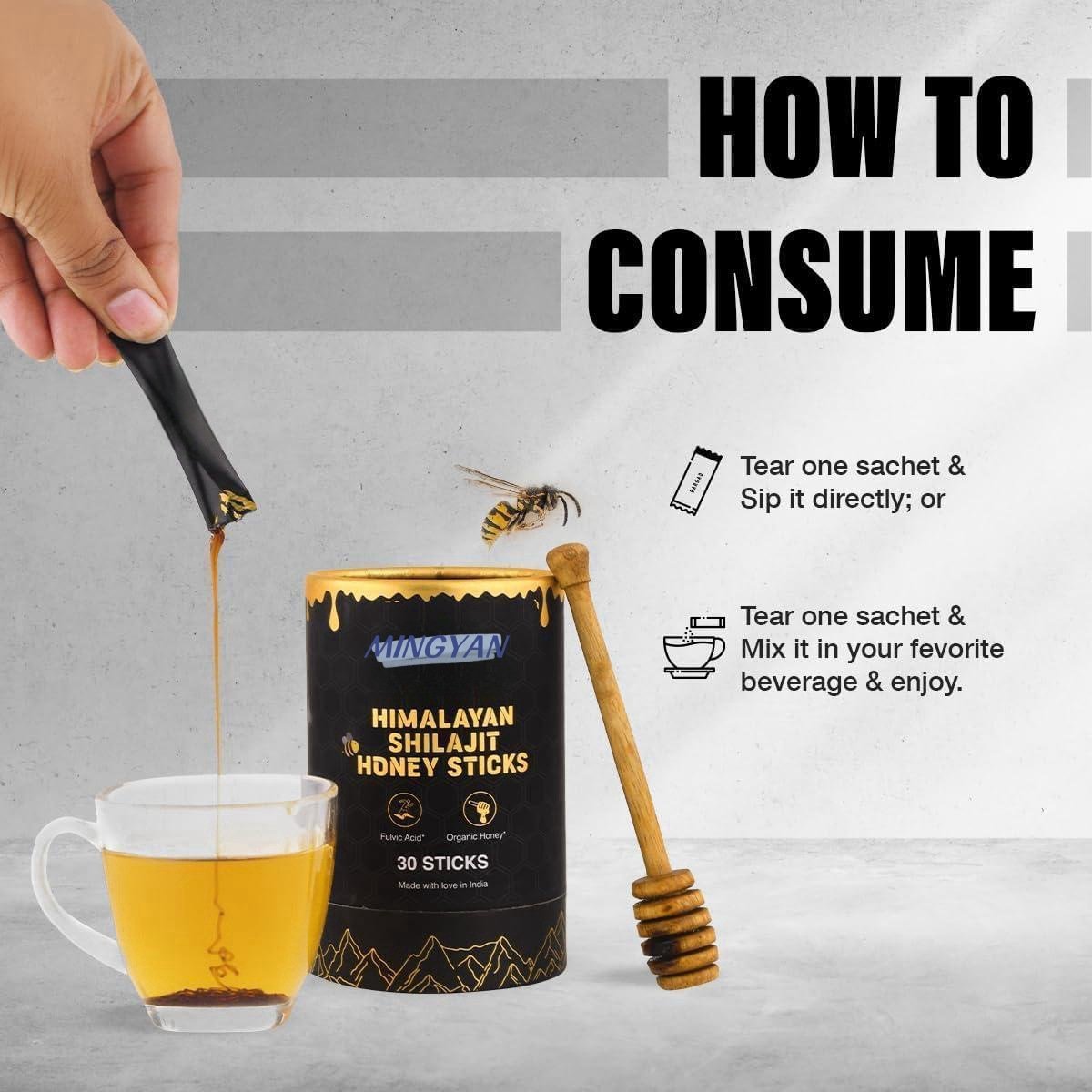 Clinically formulated Himalayan Shilajit and organic honey blend, enriched with fulvic acid. Gluten-free, no artificial additives. Designed for active lifestyles with grab-and-go convenience. Made in India with sustainable sourcing.