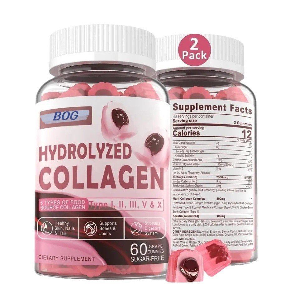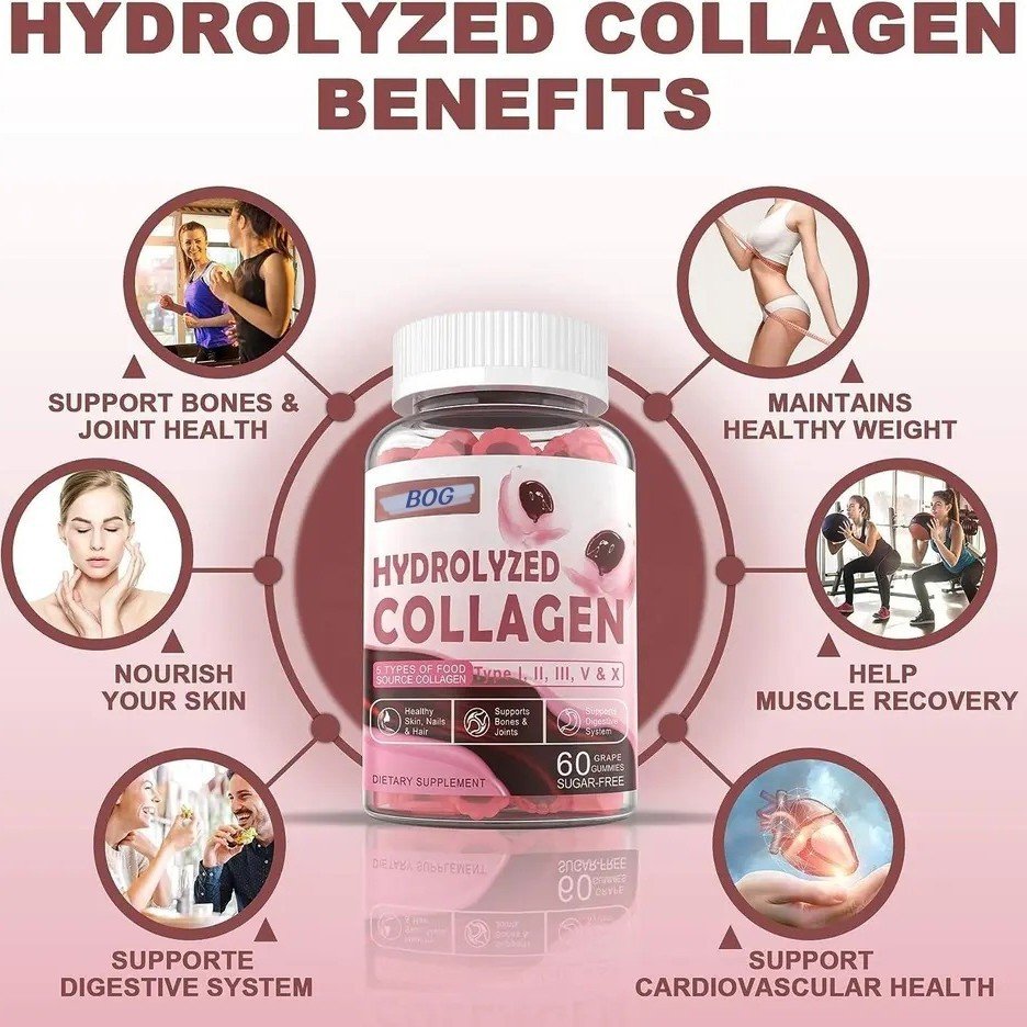 Premium Collagen Gummies – Scientifically formulated with hydrolyzed marine collagen peptides, vitamin C, and natural berry antioxidants. Clinically proven to boost skin elasticity, reduce wrinkles, and support joint health. Vegan, sugar-free, and enriched with pomegranate extract for enhanced anti-aging and cellular vitality.