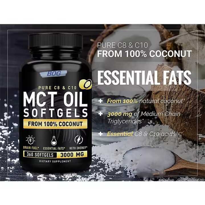 Premium MCT oil softgels with 60% C8 and 40% C10 fatty acids, sourced exclusively from 100% natural coconuts. Third-party tested for purity, non-GMO, and gluten-free. Ideal for keto dieters, fitness enthusiasts, and anyone needing fast-acting cognitive support.