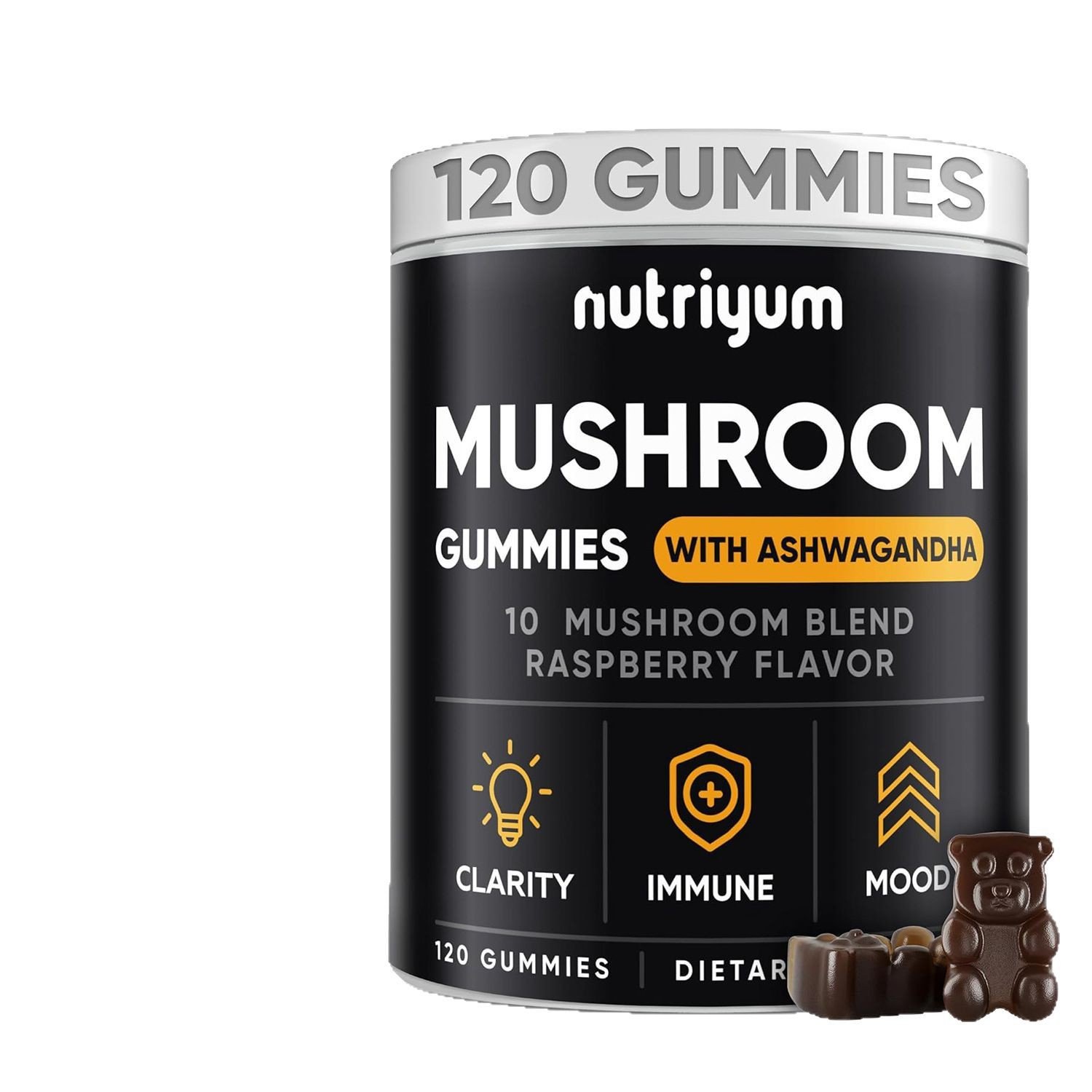 Clinically-formulated gummies combining 10 functional mushrooms (Lion’s Mane, Reishi, Cordyceps, etc.) and Ashwagandha to support cognitive, immune, and emotional health. Vegan-friendly and natural raspberry flavor.