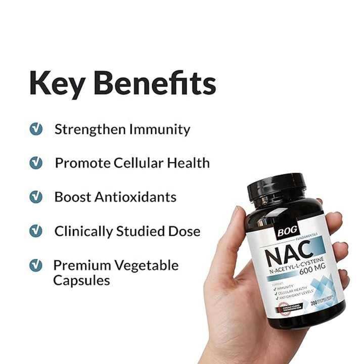 High-Purity N-Acetyl cysteine (NAC) Capsules – Clinically formulated with pharmaceutical-grade NAC (600mg per capsule) to support respiratory health, liver detoxification, and antioxidant defense. Backed by dual-action benefits: mucolytic (thinning mucus) and glutathione precursor for cellular protection. Vegan, non-GMO, and free from artificial additives. Ideal for smokers, chronic respiratory conditions, and toxin-exposed individuals.