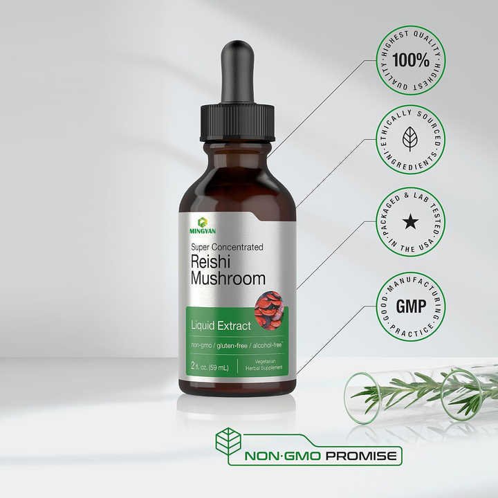 Alcohol-free, non-GMO liquid extract from ethically sourced Reishi mushrooms. Lab-tested in the USA with GMP certification. Ideal for daily wellness routines.